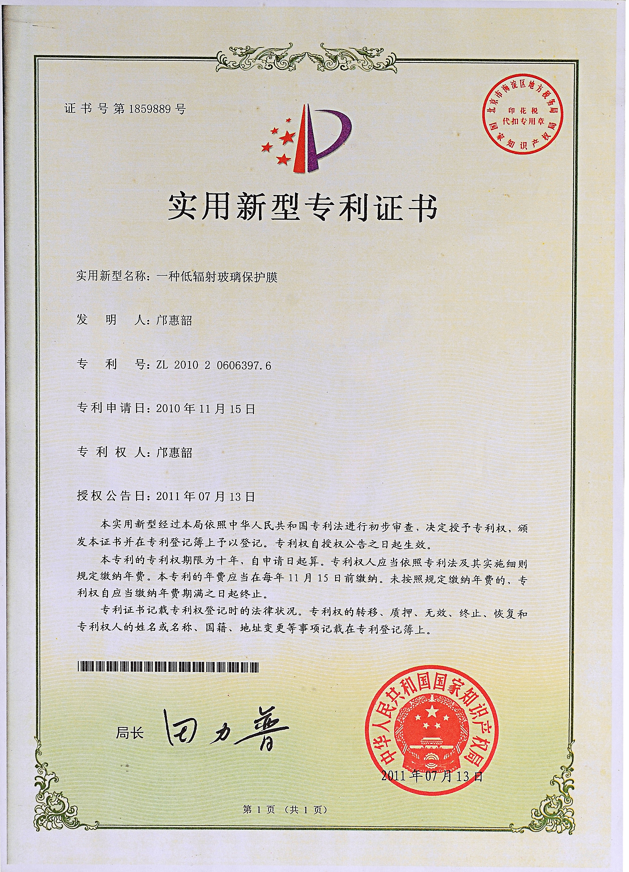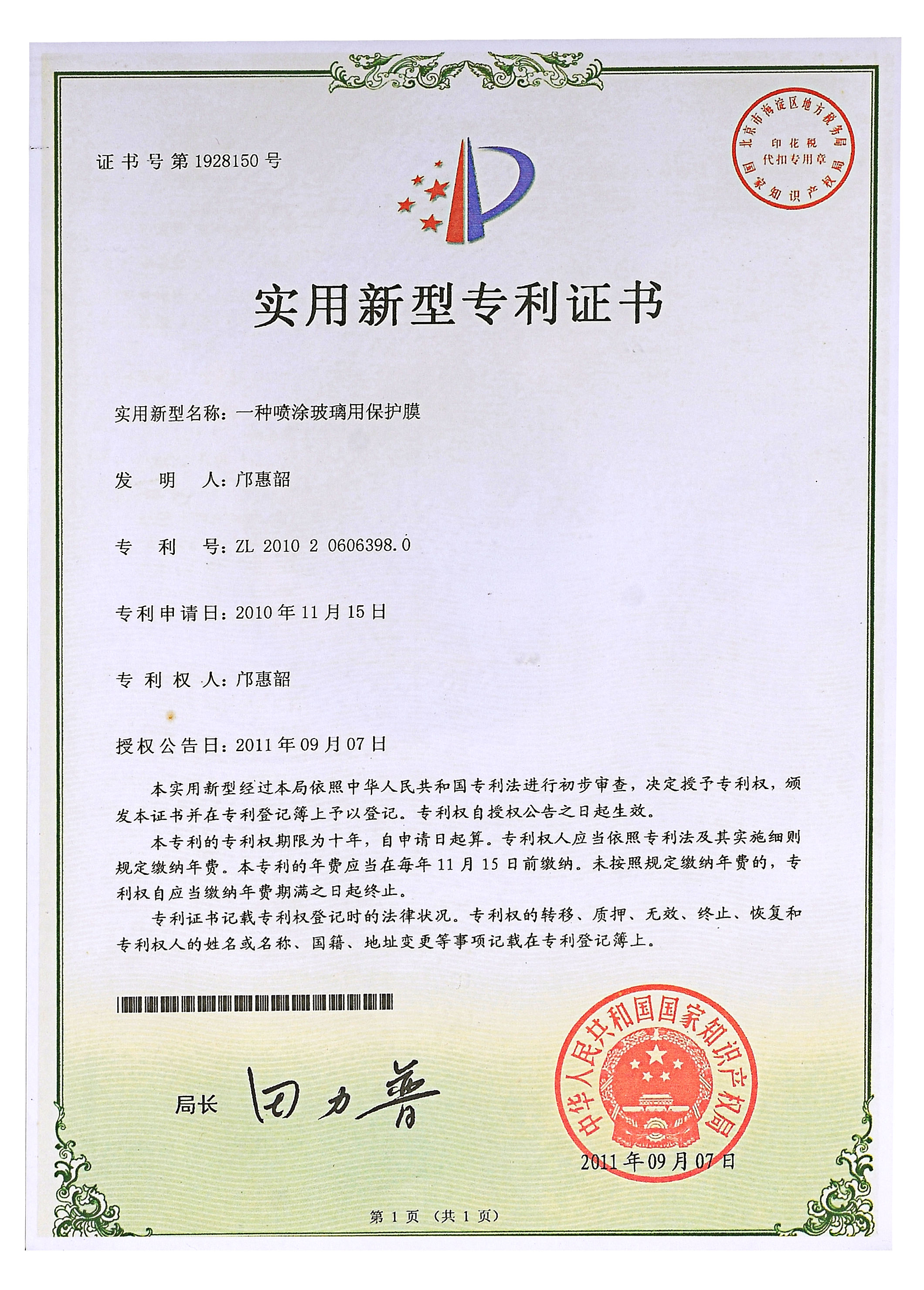 佛山分廠成立,中國第一臺超幅寬涂布機(jī)生產(chǎn)線投產(chǎn),并增添1臺幅寬2.8M的吹膜機(jī),專力打造原板Low-E玻璃保護(hù)膜成為中國第一膜,并獲得了實(shí)用新型專利證書。